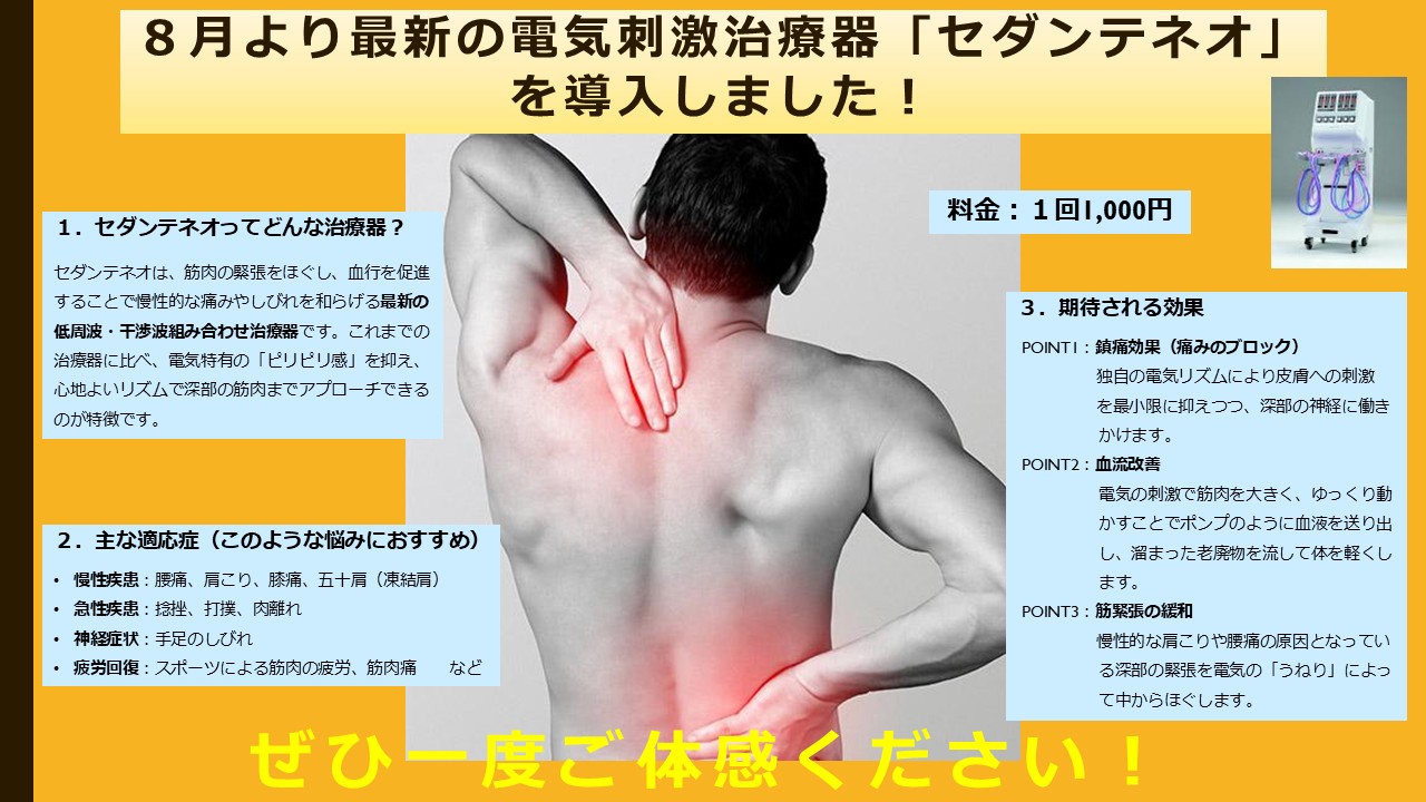 令和7年8月より最新の電気刺激治療器「セダンテネオ」を導入しました。