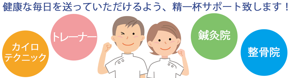 整骨・鍼灸・カイロテクニック・スポーツ外傷などご不明点や不安なことがございましたら、いつでもお気軽にご相談下さい。皆様がいつまでも快適に日常を過ごせるようお手伝い致します。